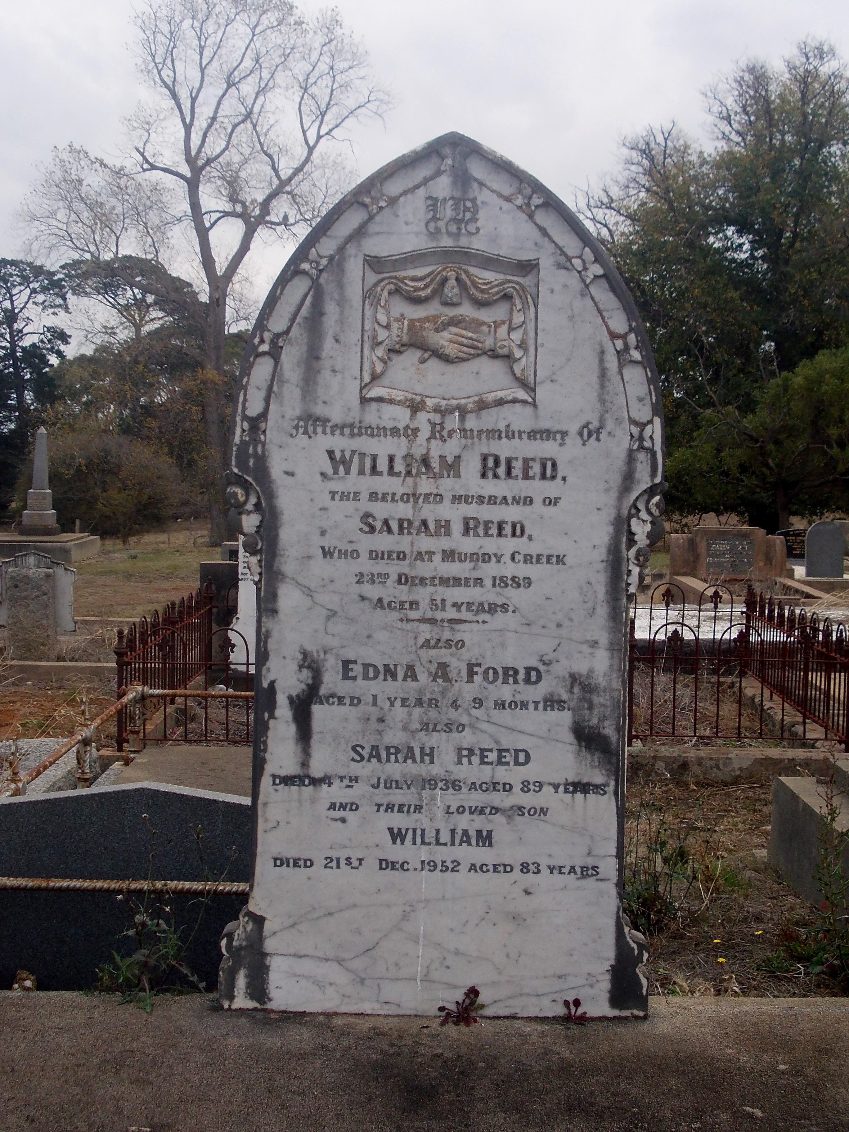 William Reed and Sarah Burgin were the subjects of my post The Muddy Creek Reeds. There you can read about William’s early life in Cambridgeshire and later as a husband and father living at Muddy Creek.