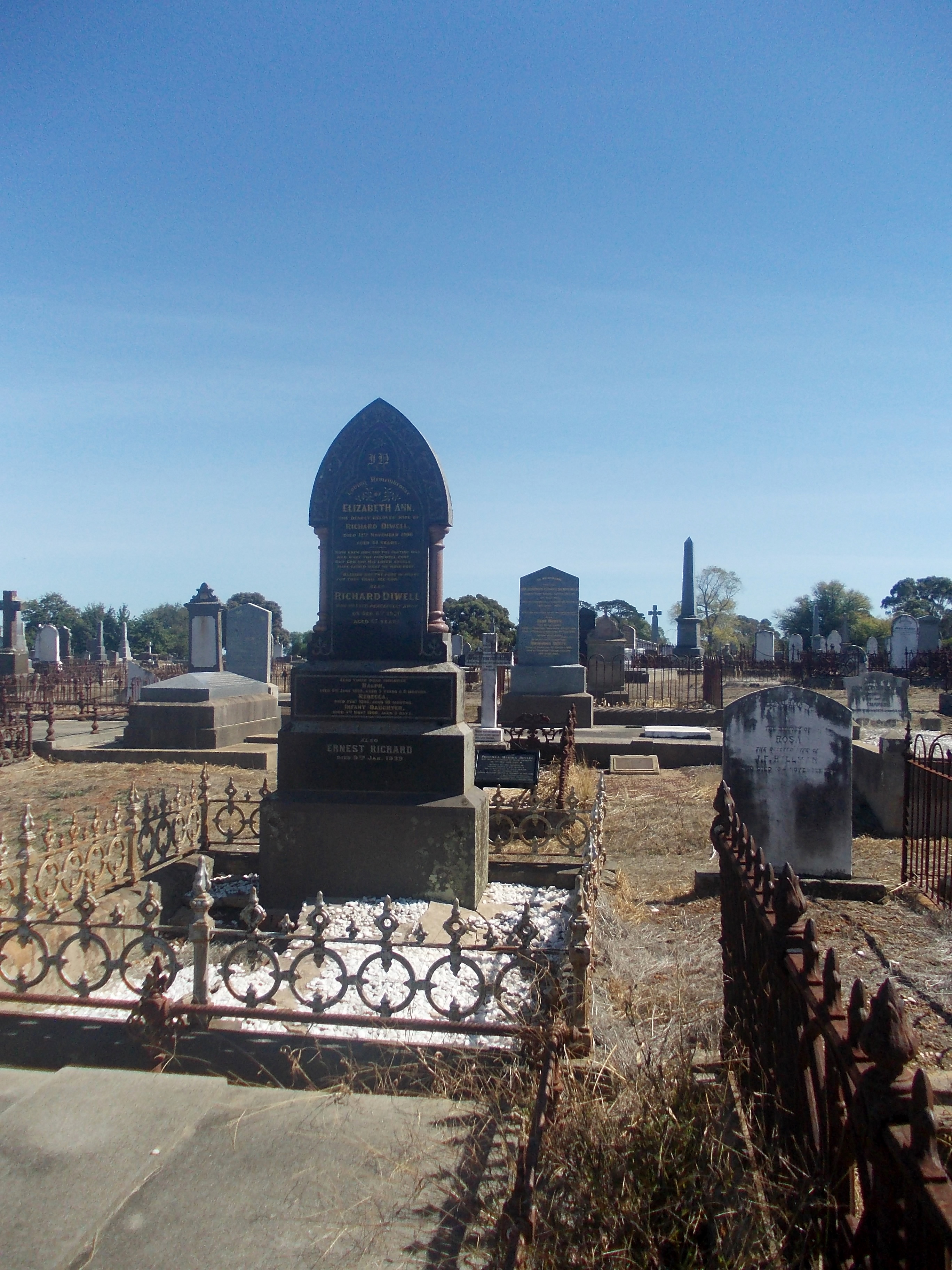 This grave is the most ornate of my family graves at the cemetery, the final resting place of my gg grandparents, Richard Diwell and Elizabeth Jelly and four of their children.