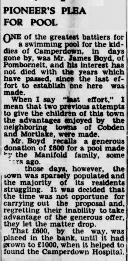 James was a champion for the local children. He donated basketball trophies for local state schools to compete for in order to encourage the children to play. He also lobbied for a swimming pool at Camperdown for the ‘kiddies’.