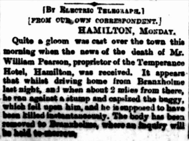 On 29 August 1900, Bessie contracted a cold, and inflammation to her lungs resulted. She rallied for a time, but things took a turn for the worse on 1 September and she died the following morning aged just thirty-two. She was remembered for her quiet, unassuming nature and her devotion and enthusiasm to her various voluntary endeavours. That admiration was evident with the large attendance at Bessie’s funeral. The pallbearers were made up of prominent townsmen including three past and future Hamilton Mayors.