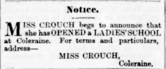 In 1876, William sold the butcher shop stock as he was leaving butchering. Mr. Wombwell took over the business. The following year, William opened a store in Pilleau Street Coleraine, and in 1878, he bought Coleraine’s Criterion Hotel. He sold the hotel in 1880, and as reported at the time he, “intends shortly to embark in another speculation in Coleraine”. It’s unclear if that eventuated.